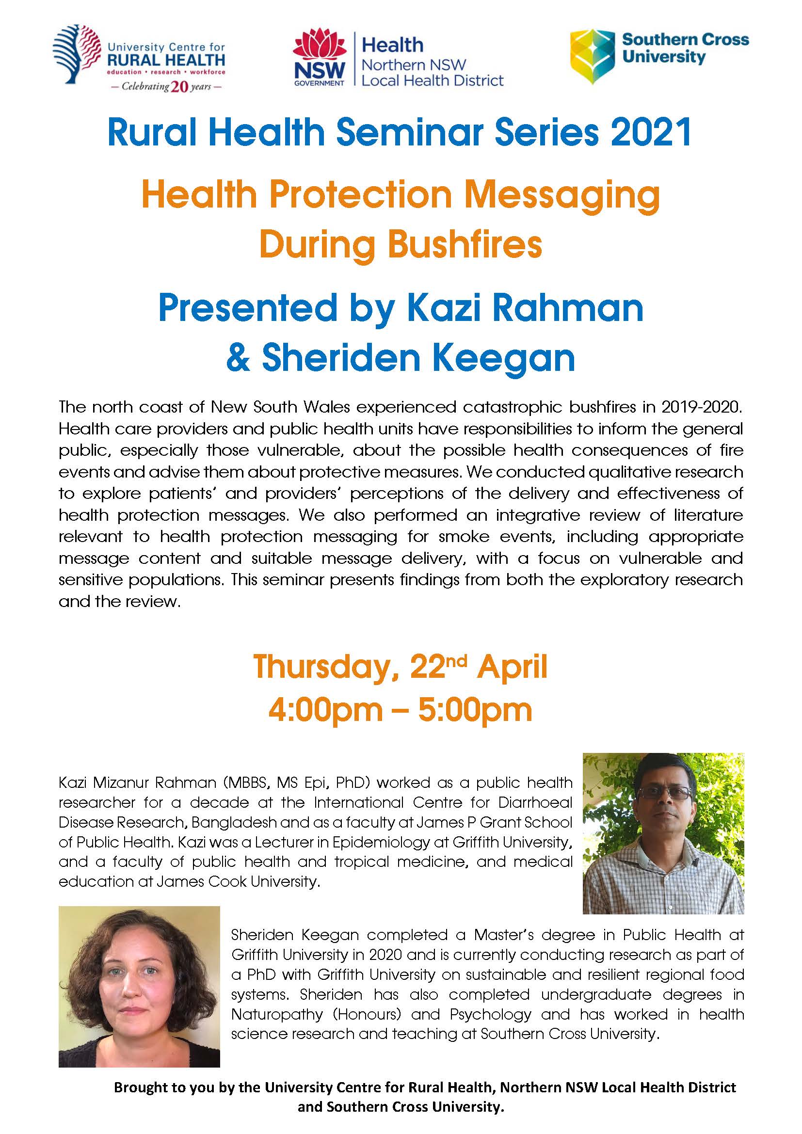 To register to attend via Zoom please click here – https://bit.ly/30Th4h4 The north coast of New South Wales experienced catastrophic bushfires in 2019-2020. Health care providers and public health units