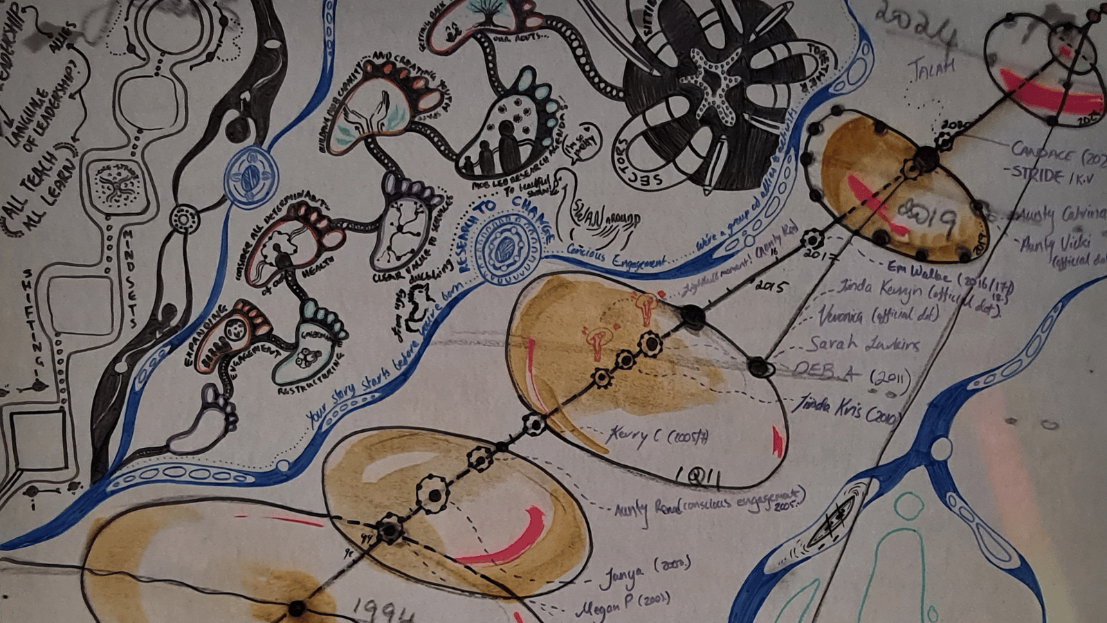 Artwork above, by Vicki Saunders and Talah Laurie, shows a timeline of STRIDE.